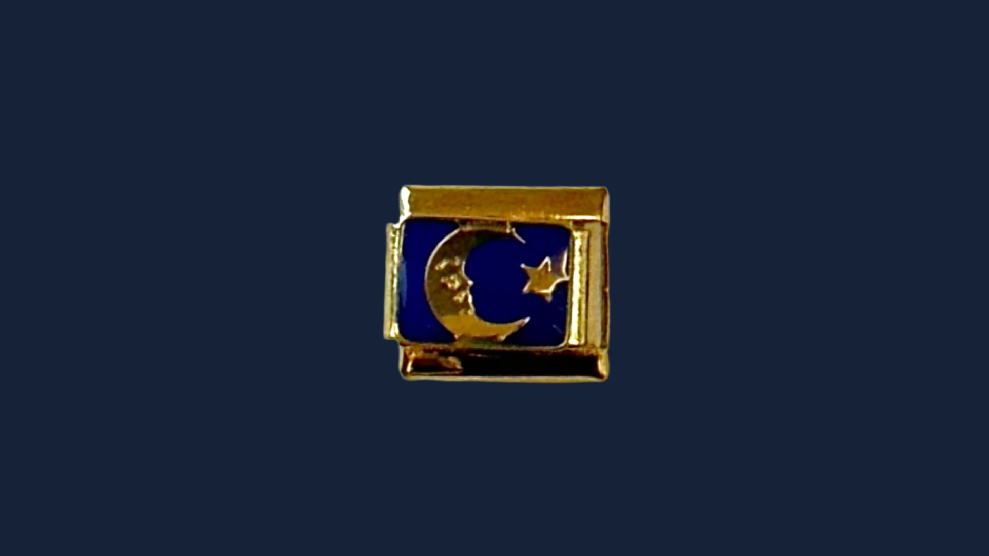 The blue crescent burst Italian Charm pairs celestial design with a gold stainless steel base, ideal for jewellery lovers in Pakistan.